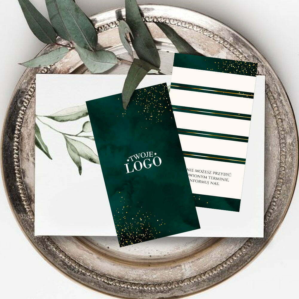 Terminarzyki dla firm – karty z miejscem na datę wizyty – butelkowa zieleń + złoto